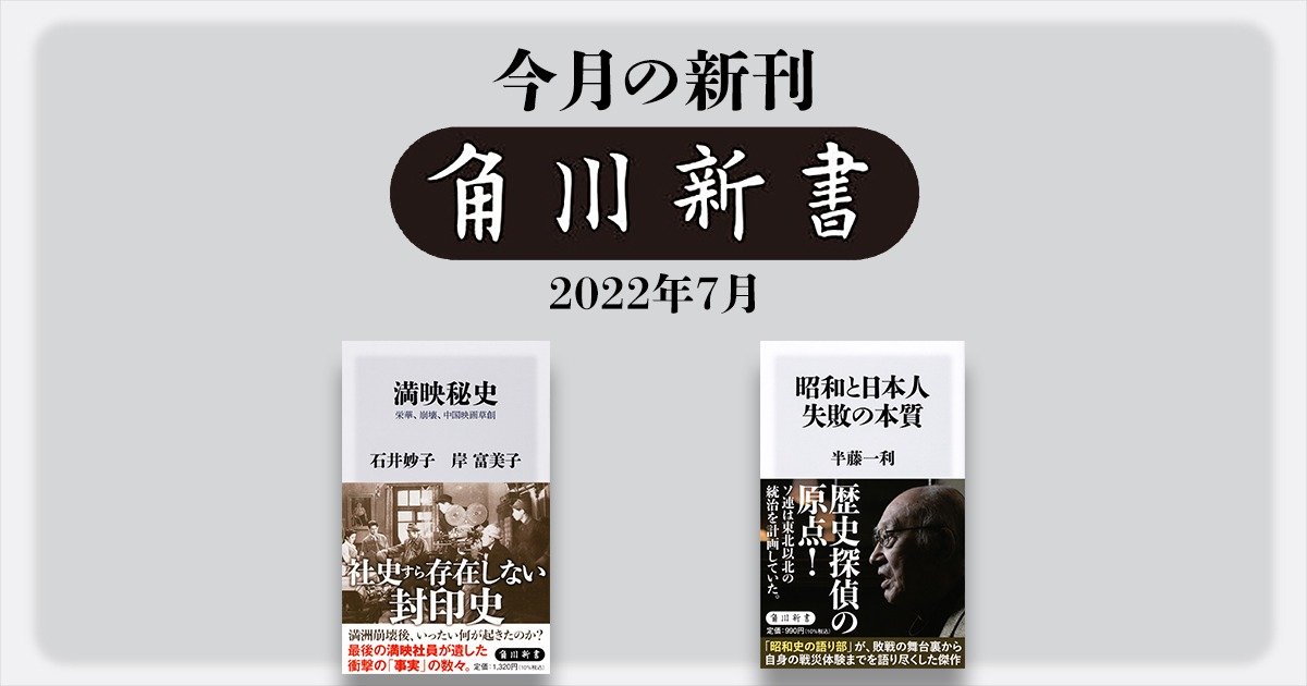7月の角川新書は個人の歴史と戦争という激動の世界史が折り重なった者達が遺した秘史と秘話を届ける!満映崩壊後の衝撃の真相『満映秘史』、「昭和史の語り部」が遺した言葉『昭和と日本人 失敗の本質』の計2作品