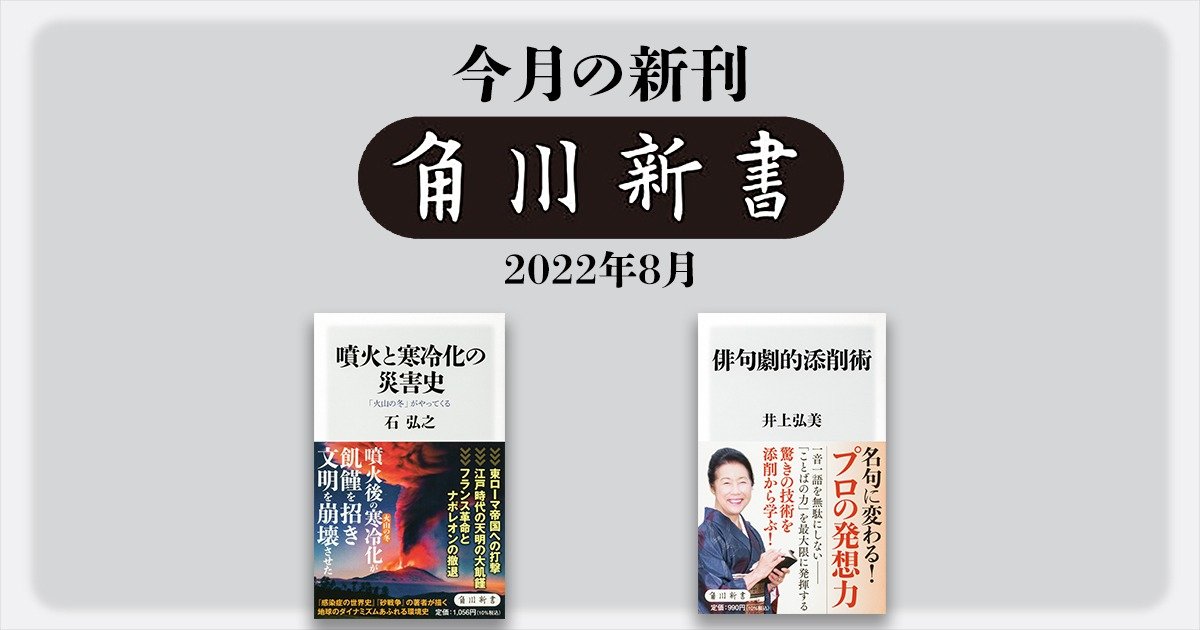 8月の角川新書は大災害と人類史、そして日々の発見を詠む、自然との関りを虫の眼と鳥の眼で描く作品が集う! 火山と人類の格闘をたどる『噴火と寒冷化の災害史』、俳句実作上達法とは『俳句劇的添削術』の計2作品