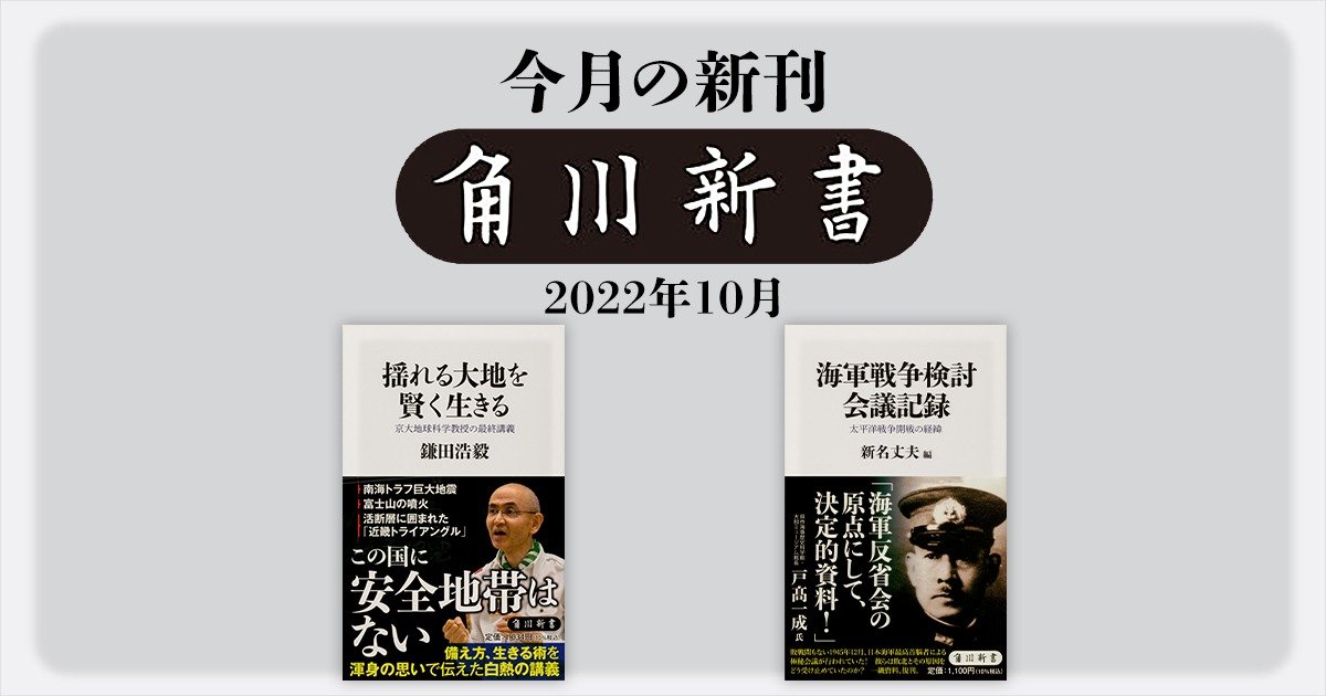 10月の角川新書は次代に遺すべきものを問う、思考を深める不朽の最終講義と不磨の一級資料が並び立つ!人気教授による白熱の講義『揺れる大地を賢く生きる』、海軍反省会の原点『海軍戦争検討会議記録』の計2作品