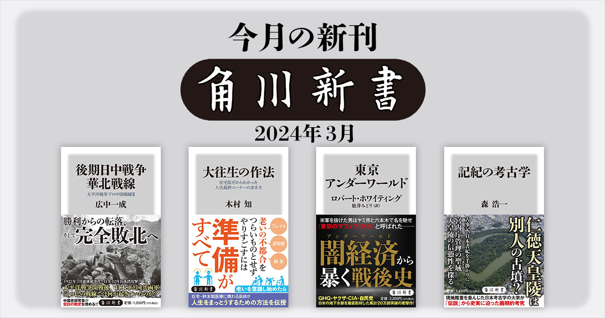 3月の角川新書は古代から近現代、一人の人生の終幕から戦争の終焉まで、「いま」という足元を照射する作品が集う! 新たな日中戦争史『後期日中戦争 華北戦線』、寿命を全うするコツ『大往生の作法』など計4作品