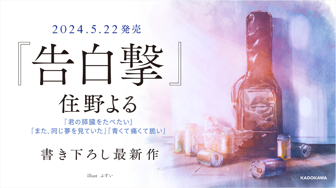 KADOKAWAは、住野よるさんの書き下ろし最新小説『告白撃』を2024年5月22日(水)に発売。本日より予約を開始します。