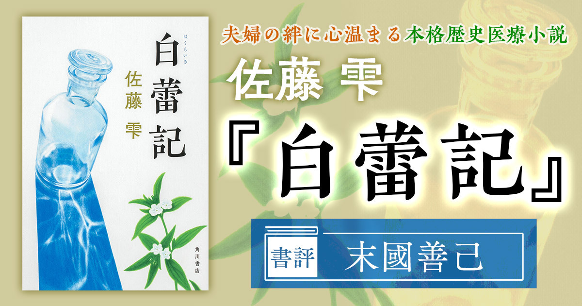 佐藤雫は、源実朝と公家の娘で正室の信子の関係に着目した鎌倉もの『言の葉は、残りて』で、第三十二回小説すばる新人賞を受賞してデビューした。二作目が茶々と大野治長の愛に迫る戦国もの『さざなみの彼方』だったのには驚いたが、妻の八重の視点で、緒方洪庵と適々斎塾(通称・適塾)の塾生たちを描いた三作目の『白蕾記』では、初の幕末ものに挑んでいる。舞台となる時代は変わっているが、男女の愛という基本のモチーフは共通しており、著者のこだわりが感じられる。