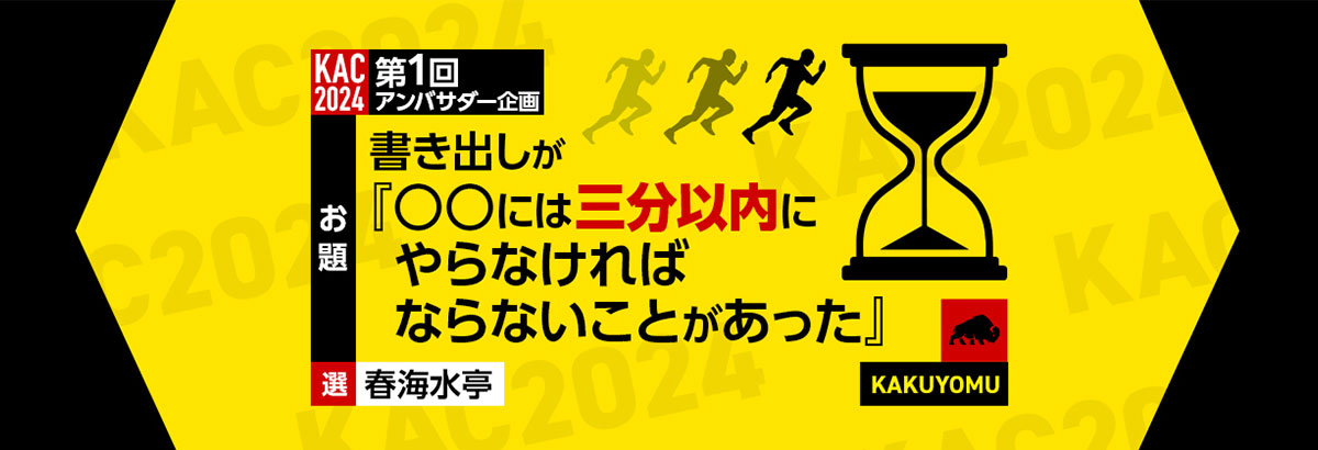 KAC20241のお題は、書き出しが『〇〇には三分以内にやらなければならないことがあった』であることだ。
