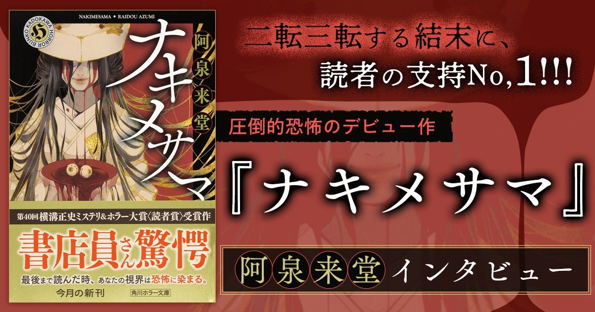 第40回横溝正史ミステリ&ホラー大賞〈読者賞〉を受賞しデビューした注目の新鋭・阿泉来堂さん。デビュー作『ナキメサマ』についてや賞に応募したきっかけ、ホラー作品に対する思いなどをうかがいました!