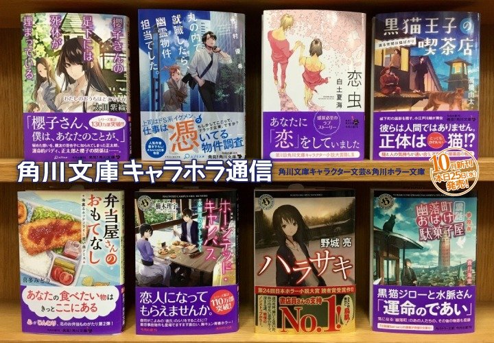 この「キャラホラ通信」では、角川文庫キャラクター文芸&角川ホラー文庫の新刊を毎月ご紹介していきます。今月は「櫻子さんの足下には死体が埋まっている」と「ホーンテッド・キャンパス」シリーズ最新刊に、日本ホラー小説大賞読者賞受賞作『ハラサキ』と、充実のラインナップ! 来月11月発売予定作もお見逃しなく!