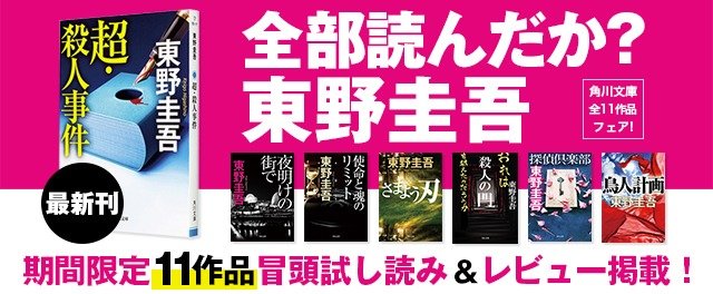 数ある東野圭吾作品。たくさん読んだという方にも、きっとまだ新しい出会いがあります。『超・殺人事件』刊行に合わせ、角川文庫の11作すべての試し読み&レビューを掲載します!