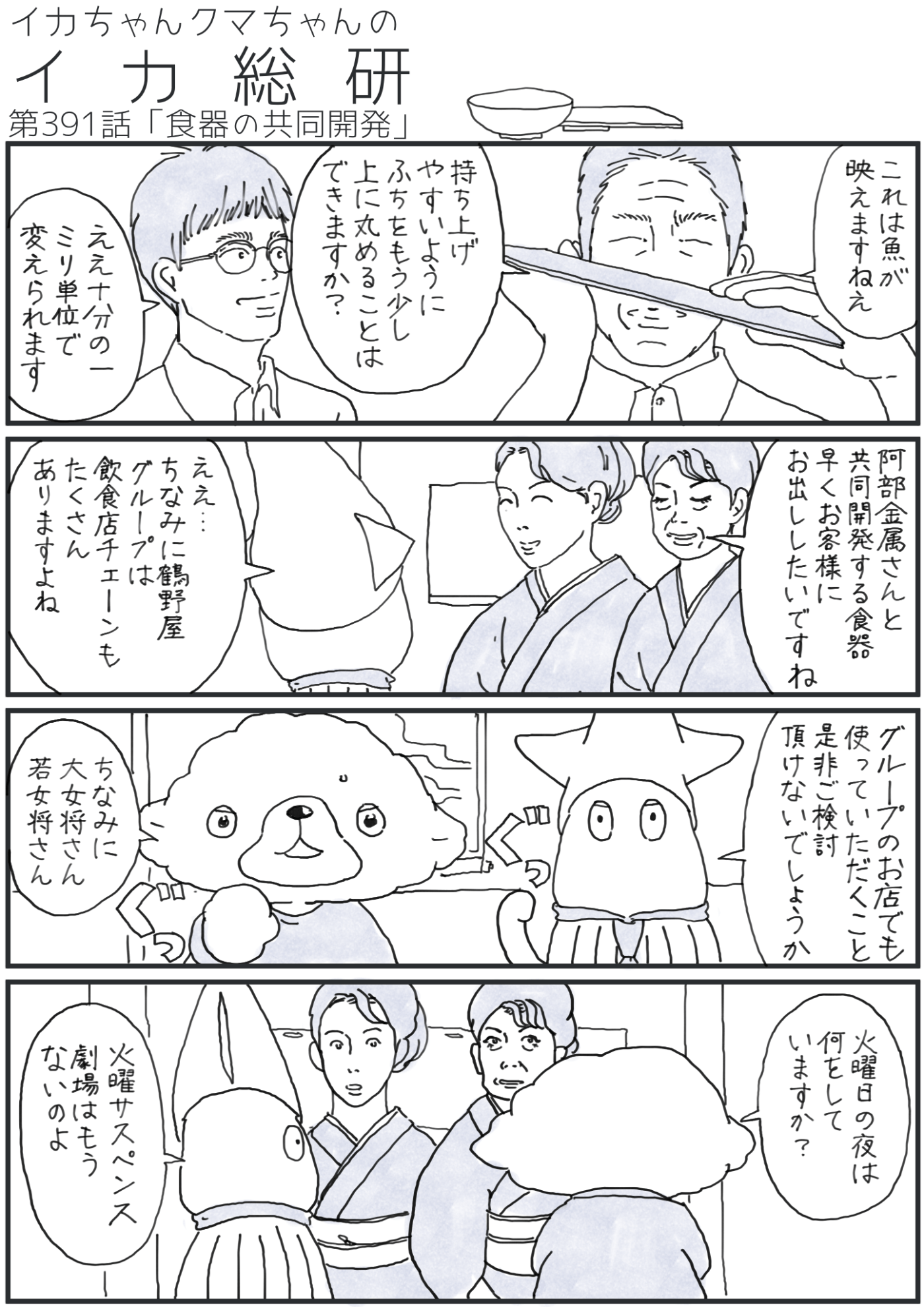 イカちゃんクマちゃんのイカ総研「食器の共同開発」
