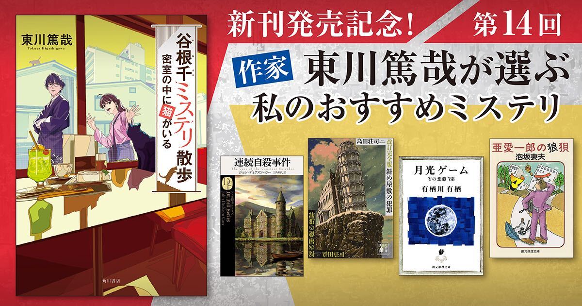 今回は2025年7月2日に『谷根千ミステリ散歩 密室の中に猫がいる』が発売された作家・東川篤哉さんに、おすすめのミステリ作品を伺いました!