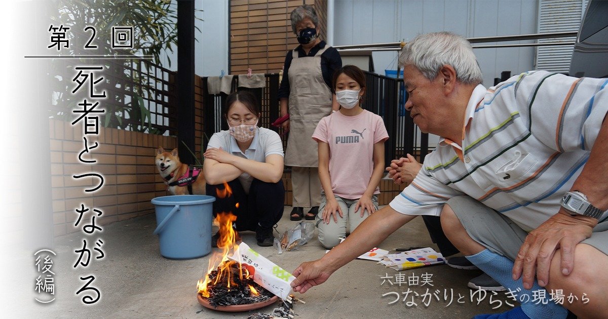 ぼんやりとした灯籠の灯りの中で六さんの震える声を聞きながら、私は思った。簡単に乗り越えられない死があってもいいんじゃないか、と。私も六さんもそれぞれが哀しみを抱えながら、これからも時折心の中で高木さんを探し、語りかけ続けるだろう。そうやって死者を想い続けることは辛いことだが、死者とつながり生きていく、一つの形なのではないかと、そう思えたのだった。
