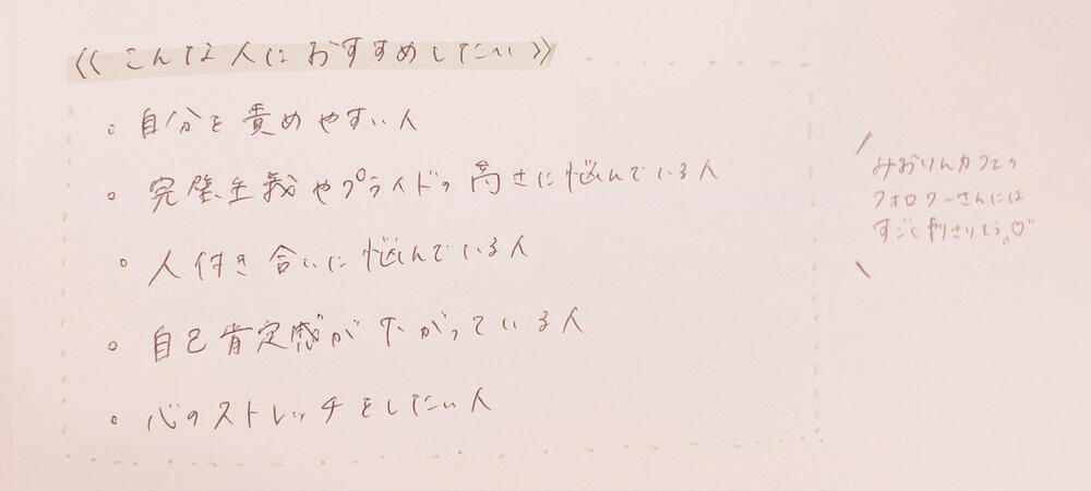 わたしは毎月読んだ本をまとめて紹介する読書記録記事をブログにアップしているので、「この本はこんな人におすすめしたいなぁ」というメモも入れておきました。
