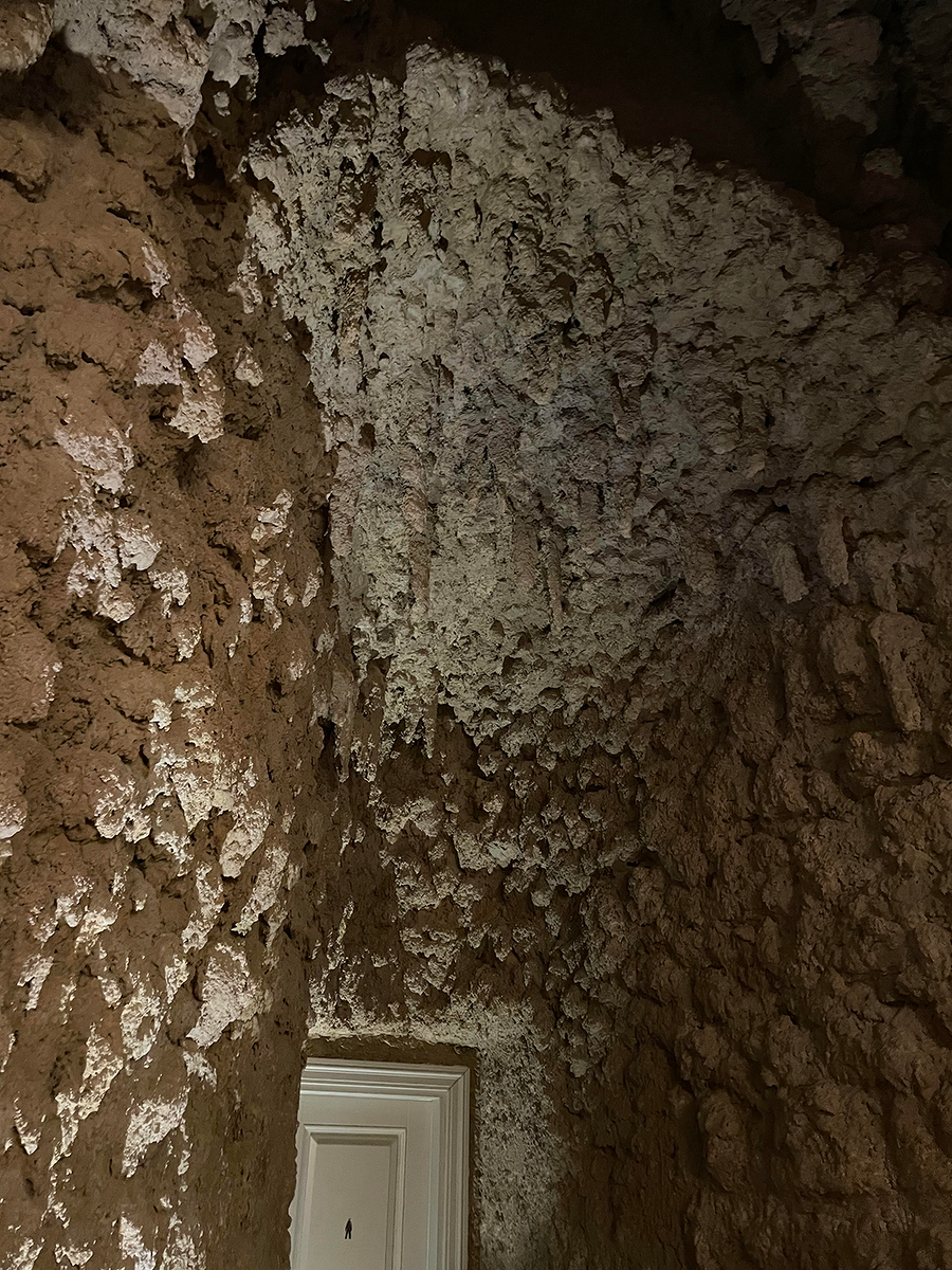 今回、冬期は閉鎖ということで、このすぐ横の鍾乳石の壁を見学できなかったが、ホテル側にも似た場所があり、そこへ案内してくれた。この画像のような壁面だという。
