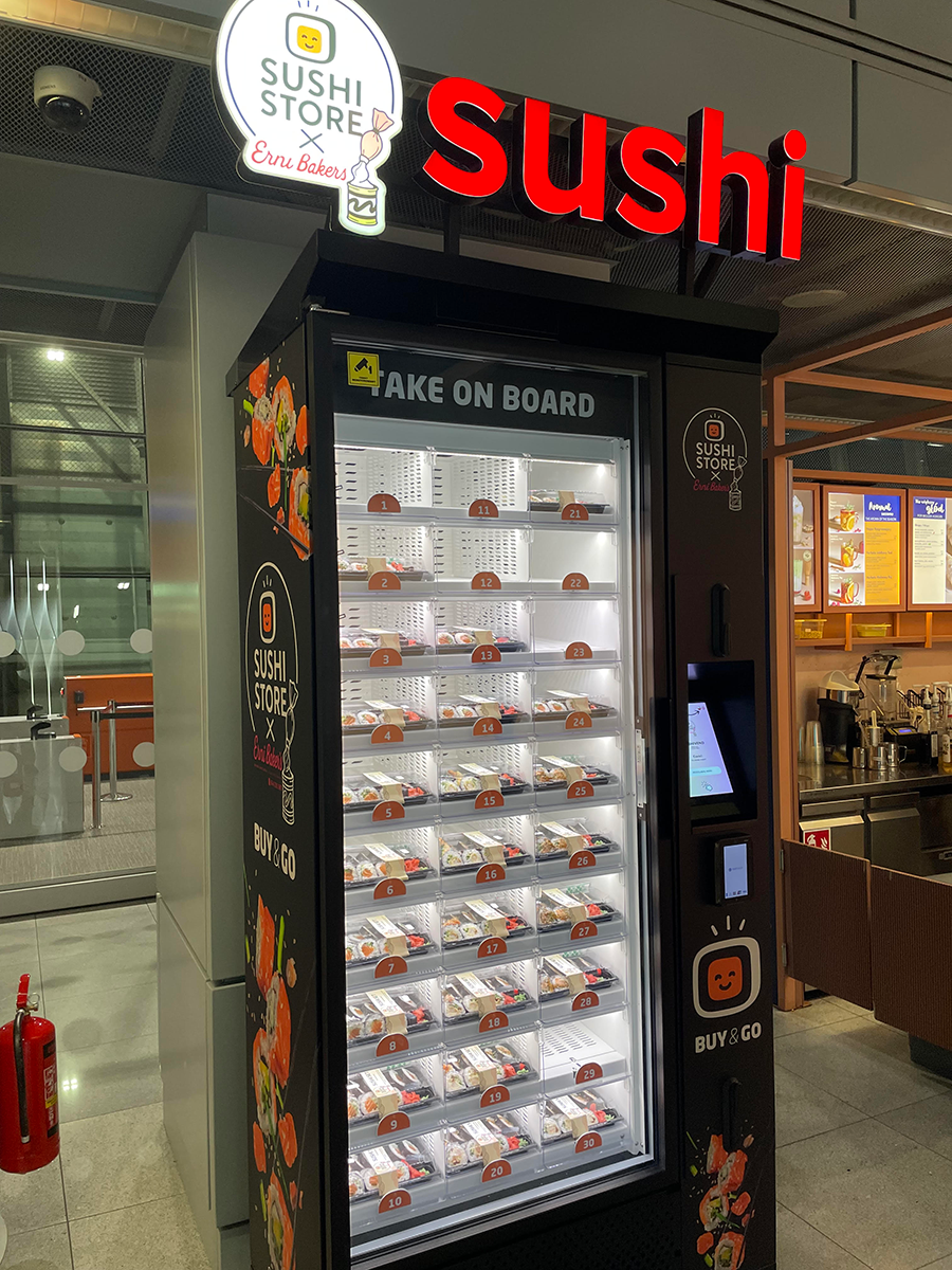 歩いていたら、SUSHI STORE なる自販機があって、びっくり。フランクフルトへよく行く松原さんは、以前も似たものを見かけたことがあるという。ネタはほとんどサーモンだった。まあ、そうだろうな。畏れ多くて食べていない。