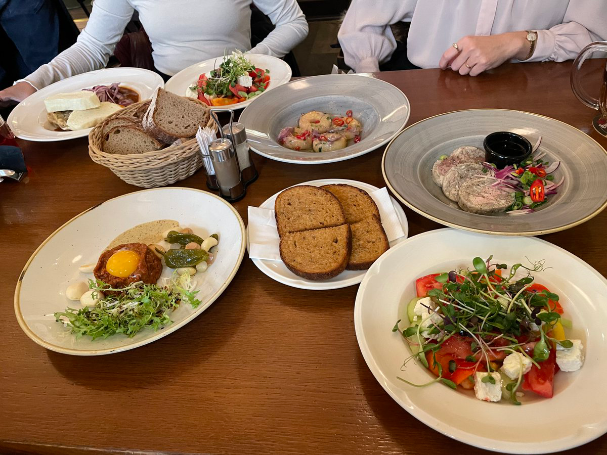 いかにも地元の人が集まりそうな和やかな店で、4人でいろいろ頼んでシェア。料理の名前はよく覚えていないけど、左手前がタルタルステーキ、右奥がSOSの36章に出てくるトラチェンカ、中央奥のパイナップルみたいなやつはにおいが強烈な羊のチーズの料理。どれもびっくりの美味で、睡眠不足ながら元気いっぱいになった。