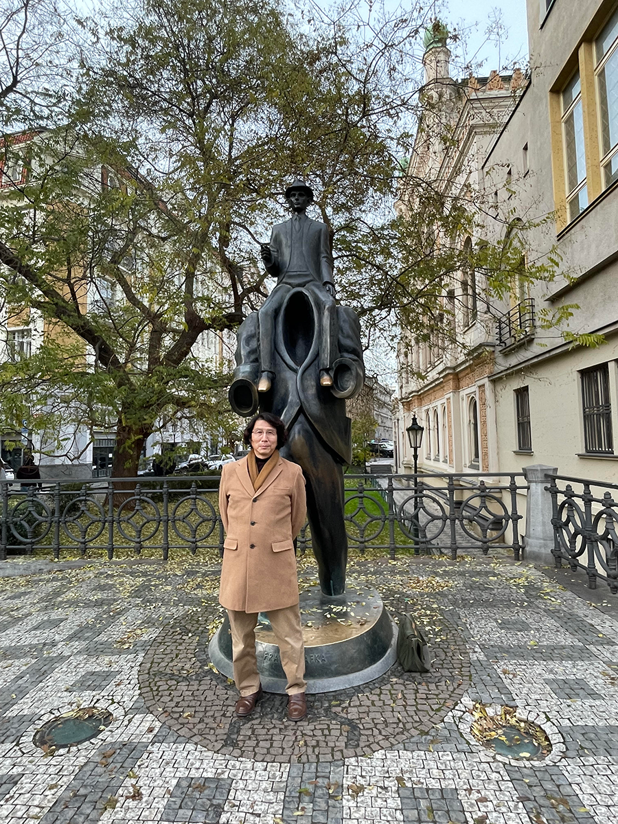 やがて、キリスト教の区域からユダヤ教の区域に足を踏み入れ、カフカ像の前へ。