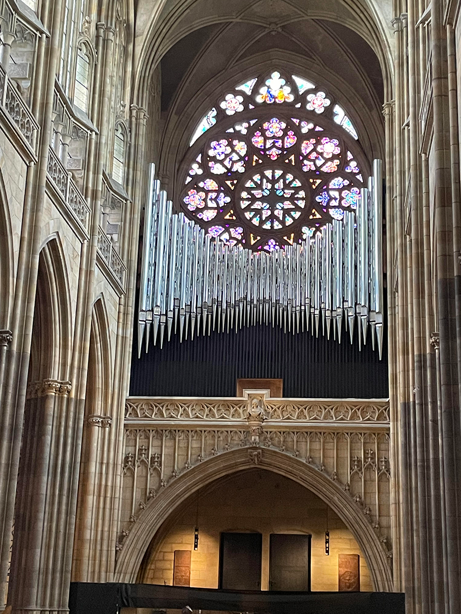 これが今年設置されたオルガンの上部のパイプ。調律に1年かかるので、まだ演奏されていないという。後ろのガラスがきれいですね。