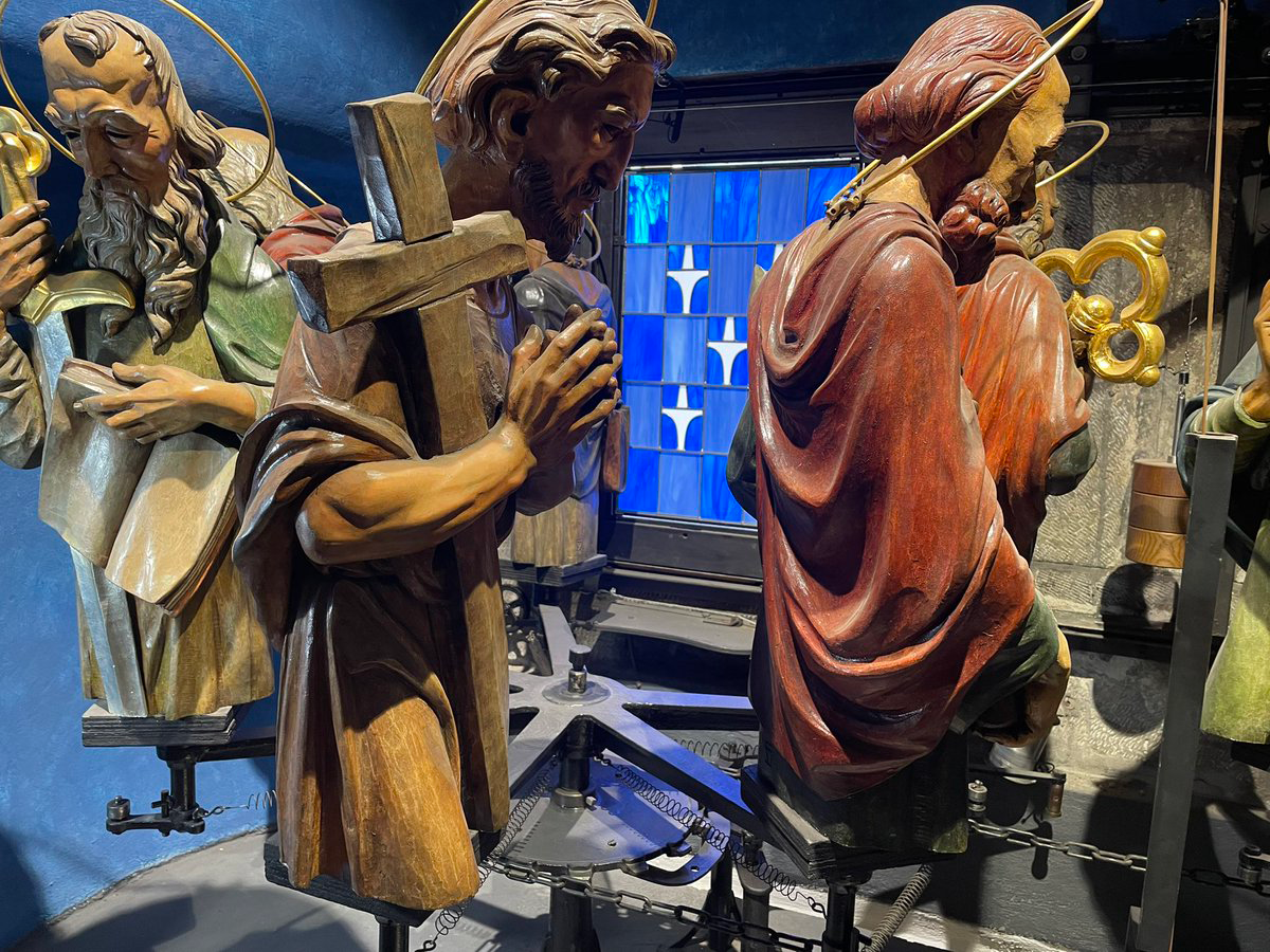 この機械室の上では12使徒がぐるぐるまわる。説明を聞いているあいだに動きはじめる。