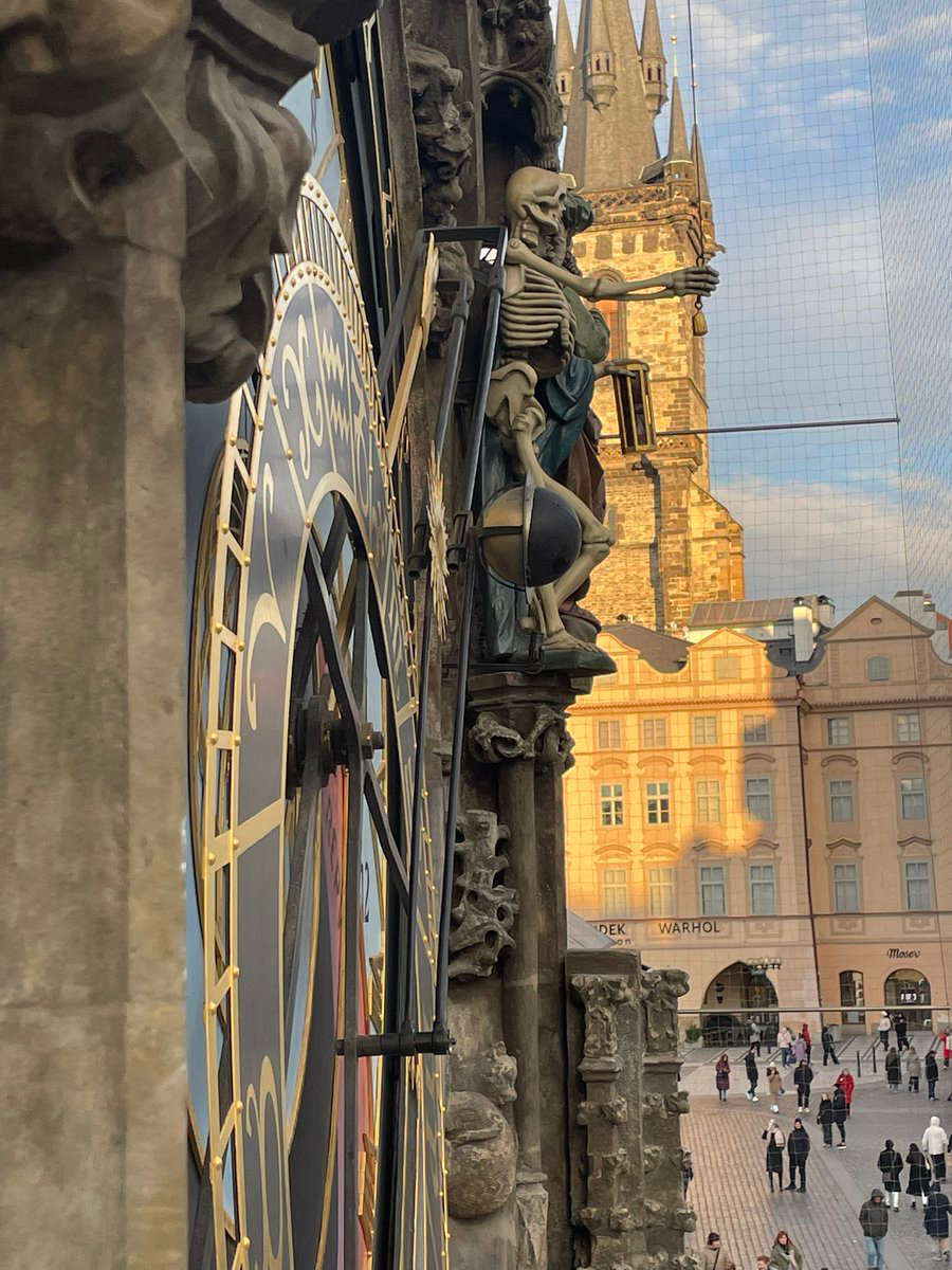 そこから天文時計のほうへ向かう途中、なんと前方からヴィートさんがやってきた! きょうはチェコと日本の中学生の交流団体を案内している途中だった。うれしい再会。また日本かチェコで会いましょう。