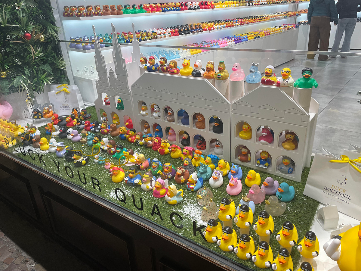 風呂に浮かべるアヒル(正式にはなんというのか。ラバーダック?)ばかりを売っている店もいくつか。店名は Duck Boutique。映画のキャラクターとか、実在の人物とか、いろいろいますよ。たとえば、エリザベス女王がどこにいるかわかりますか? 自由の女神は? 拡大してじっくり見てください。