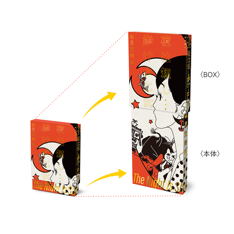 『四畳半神話大系』と『夜は短し歩けよ乙女』の、印象的な冒頭シーンをボリュームたっぷりにデザインしました。