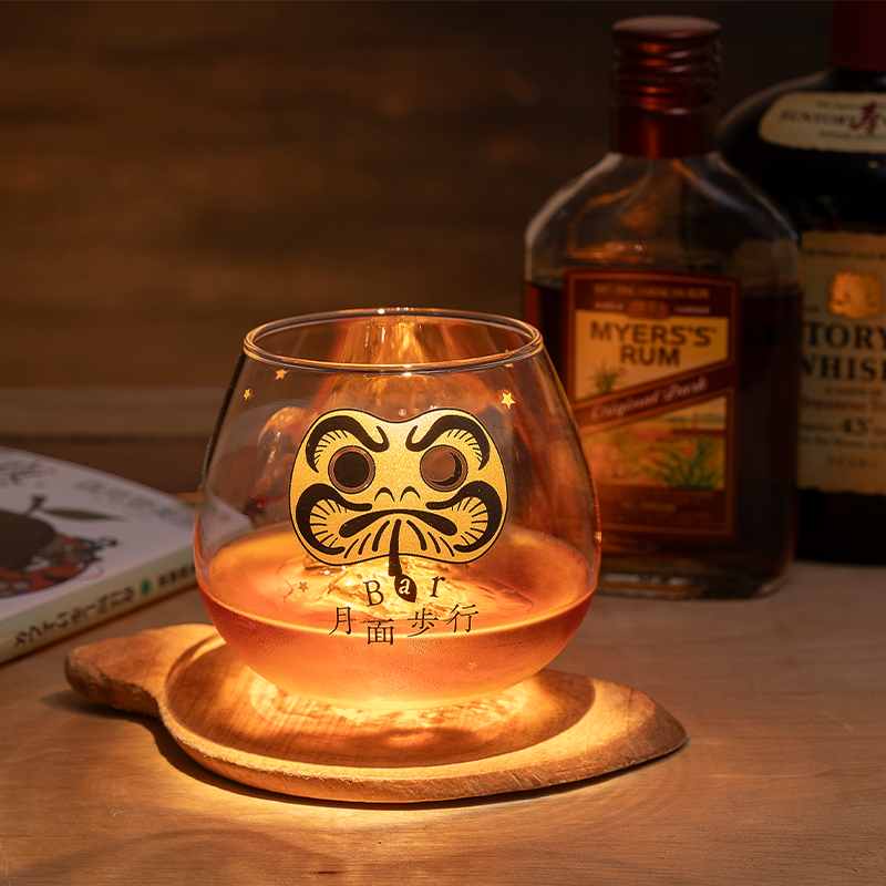 『夜は短し歩けよ乙女』の作中で、黒髪の乙女が“めくるめく大人世界”に足を踏み入れるバー「月面歩行」をイメージしたグラスを、森見登美彦さん監修のもと製作しました。ラムも美味しく飲めちゃいます♪