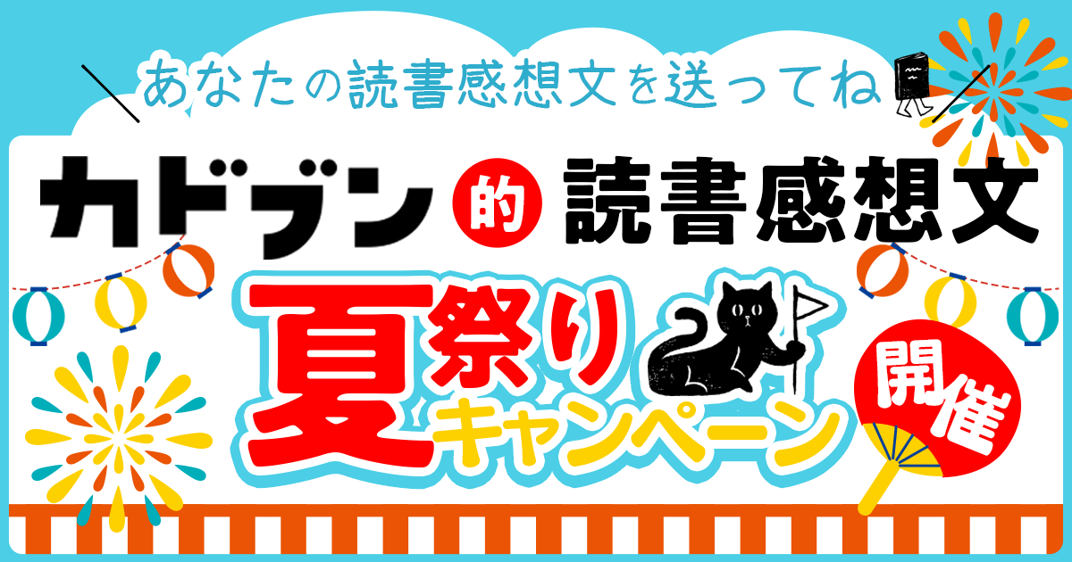 「読書感想文って読むのも書くのもめんどくさい」から、「読書って楽しいかも!」になってほしいという願いを込めて、カドブン的読書感想文“夏祭りキャンペーン”を開催します!