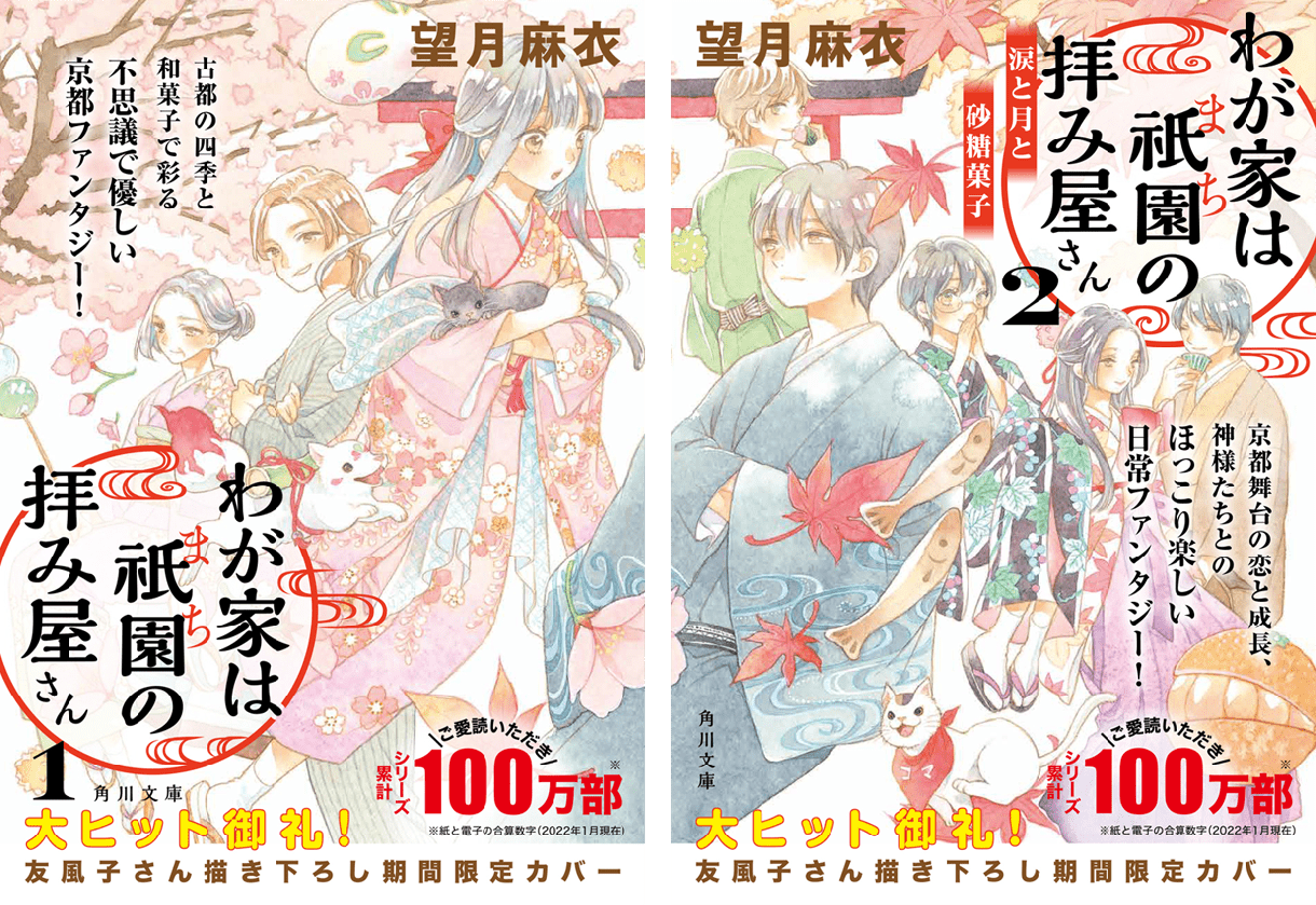 皆さまにご愛読いただき、「わが家は祇園の拝み屋さん」シリーズは累計100万部を突破!! これを記念して、カバーイラストレーター友風子さん描き下ろし、新イラストカバーにて1・2巻を限定出荷いたします!