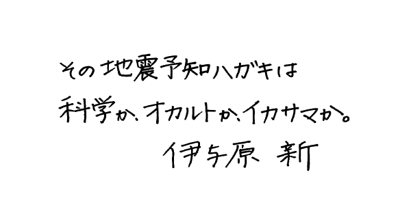 「アスアサ五ジ ナガノ ジシンアル」。東大の地震研究所に届いたはがきには、その一行だけが記されていた。長野で震度5強の地震が起きたのは昨日のことで、はがきの消印は一昨日。かつて「虹で地震予知をする」と注目を浴びた、自称〝地震研究家〞椋平広吉の電報に文面が酷似している。これはよくあるイタズラの一種なのか、それとも――。