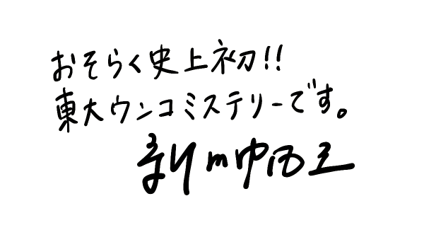 ミステリー作家の新川帆立は、東大で刑法学の准教授を務める友人リリーからある事件の相談を受ける。人糞から飲用水を作る研究をしている農学部の学生が、何者かによって汚物タンクに突き落とされたのだという。さらに事件現場からは、学生が運搬していた人糞が消えていた――。帆立&リリーのコンビはウンコ泥棒の特定に動き出す。