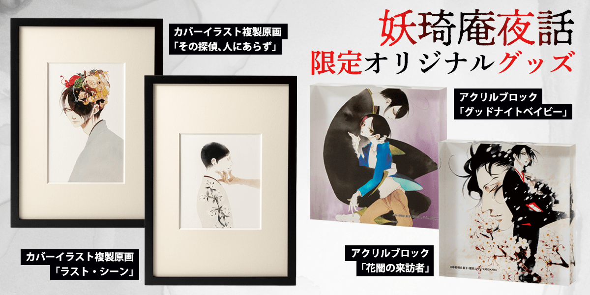 本編決着を記念して、中村明日美子さんによるカバーイラストを使用したオリジナルグッズが誕生。美しく妖艶な「妖琦庵夜話」の世界をグッズでもご堪能ください。