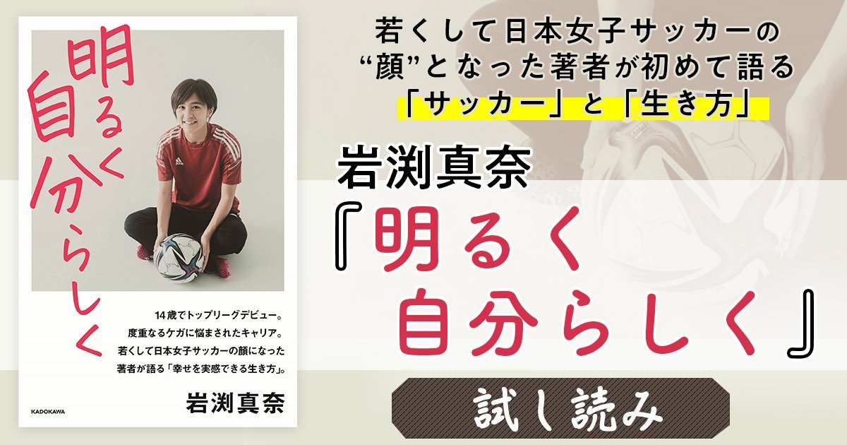東京2020オリンピックのサッカー女子日本代表(なでしこジャパン)に選ばれ、エースナンバー「10番」を背負う岩渕真奈選手。14歳でトップリーグデビューし、16歳からなでしこジャパンに選ばれ続け、海外でもプレー。順風満帆なサッカー人生に見えますが、実はそんなことはないと言います。常に自分よりも身体の大きな選手との戦い、度重なるケガ、なでしこジャパンを背負う重責……苦しいことも多々あったサッカー人生を彼女はどう乗り越え、今に至るのか。本人曰く「今までの自分の全てが書いてあります」という初の著書『明るく 自分らしく』から、一部を特別に全文公開します。