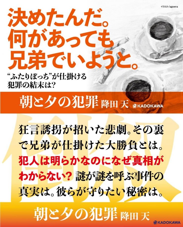 9月29日に発売される、日本推理作家協会賞受賞作家・降田天による『朝と夕の犯罪』。