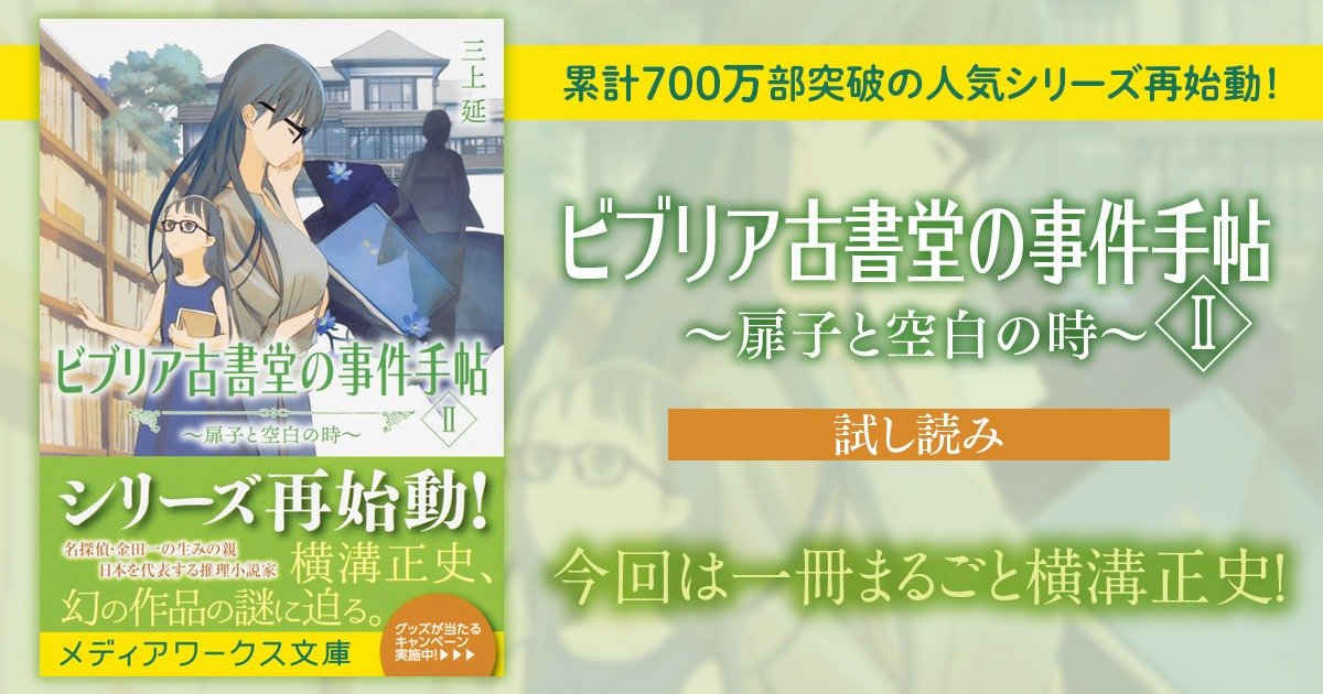 ▼三上延『ビブリア古書堂の事件手帖II ~扉子と空白の時~』詳細はこちら(KADOKAWAオフィシャルページ)