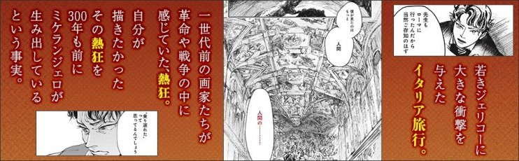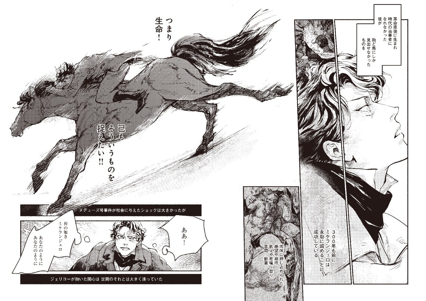 「マイルスの前にパーカーがいたように、ドラクロワの前にはジェリコーがいた。時代を切り拓いた兄貴分的な天才の過剰な生と創造。日本で今、こんな漫画が読めるとは!と瞠目。」平野啓一郎