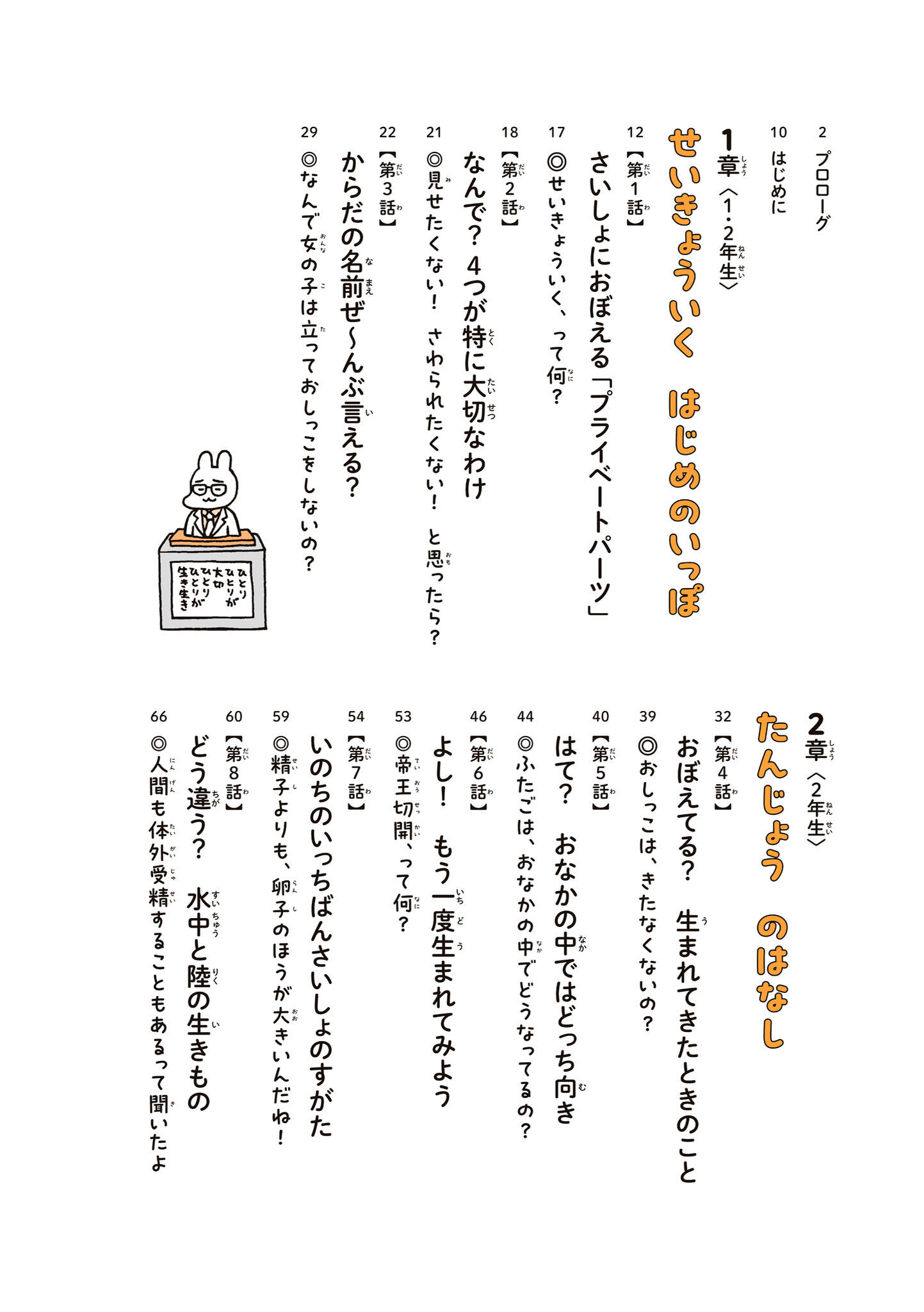 コミックエッセイ「おうち性教育はじめます」は、2020年に発売した第1弾では3~10歳の幼児期から学童期のお子さんを持つ親向け、2022年発売の第2弾では10~18歳の思春期の子を持つ親向けとして、子どもと関わる大人の方に支持されてきました。【子どもが自分で読める本がほしい!】というたくさんの声にお応えして、シリーズ第3弾となる本書は、小学生がひとりで安心して読める1冊にまとめました。最初に知りたい「プライベートパーツ」の話から「誕生」や「体の変化」はもちろん 、「同意・不同意」「バウンダリー」といった人権に関わる考え方まで、この1冊でわかります。