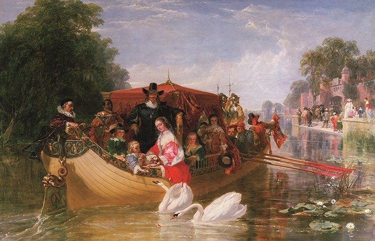 のどかな船遊びの絵。だが『チャールズ一世の幸福だった日々』というタイトルが