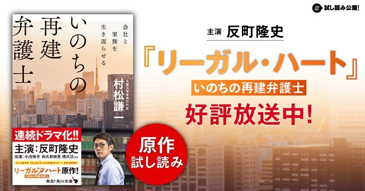 カドブンではドラマの放送開始を記念して、現役弁護士・村松謙一(構成協力:石村博子)による原作『いのちの再建弁護士 会社と家族を生き返らせる』(角川文庫)の試し読みを実施。