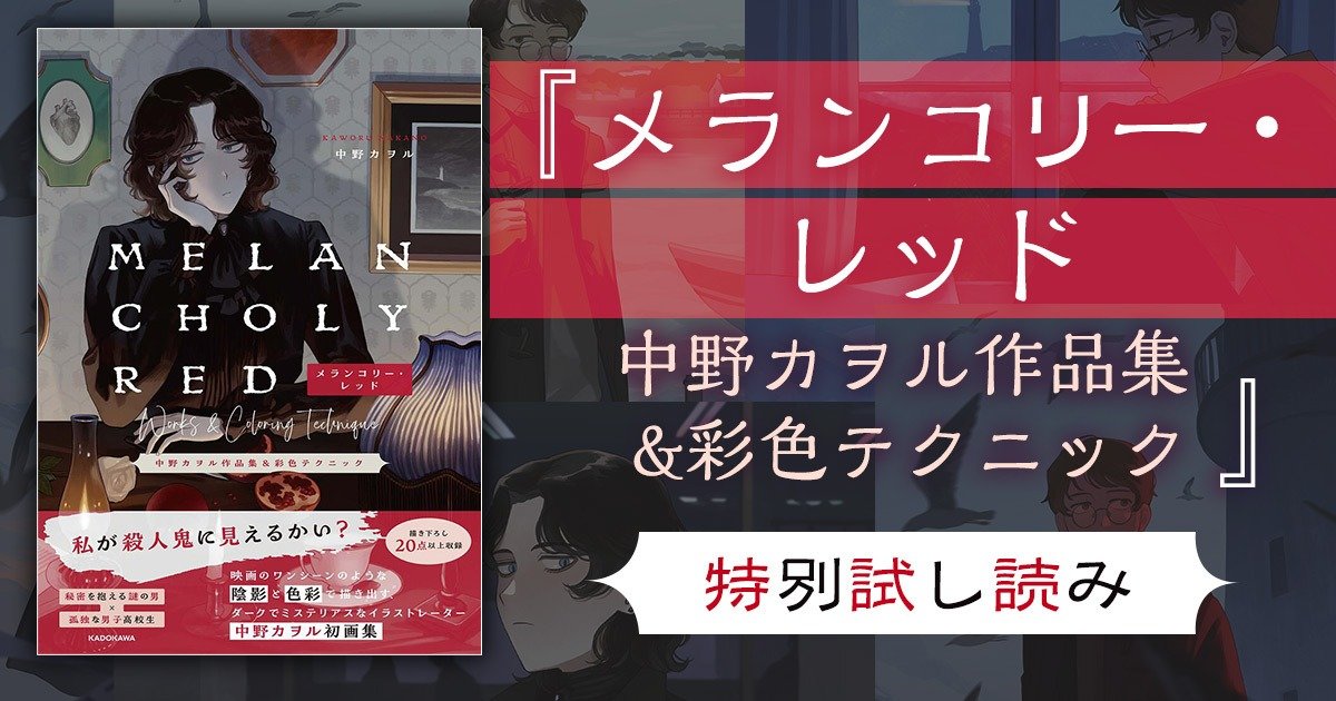 ダークでミステリアスな大人気イラストレーター、中野カヲルさんの初作品集『メランコリー・レッド 中野カヲル作品集&彩色テクニック』発売を記念して、作品の一部を特別公開します!ぜひお楽しみください!