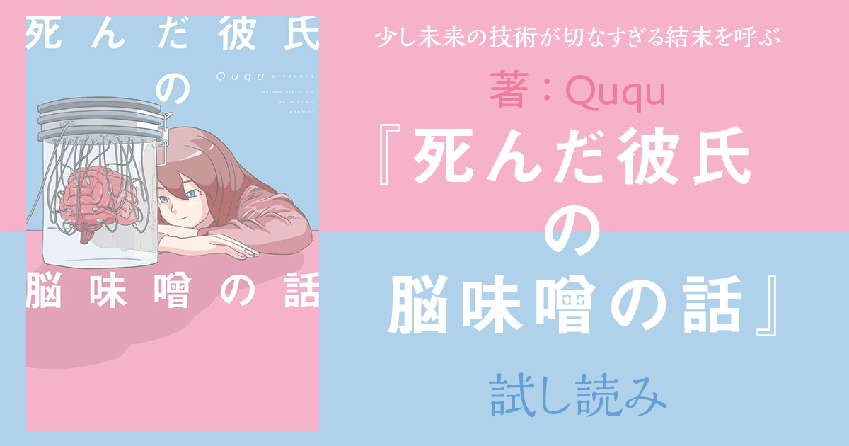 Twitterやnoteで漫画を発表し、少し未来の技術によって大切なものに気づく人たちを描いた「死んだ彼氏の脳味噌の話」などで大人気になったQuquさん。2022年にはフジテレビ系「世にも奇妙な物語」で作品のひとつ「元カレと三角関係」がドラマ化もされ話題を呼びました。