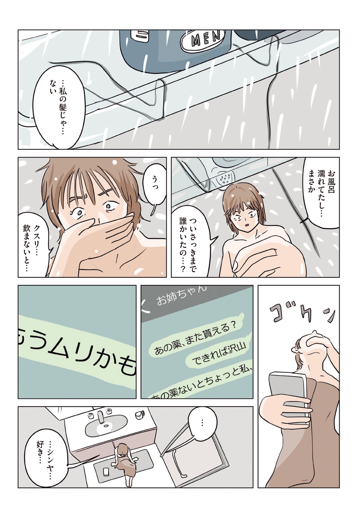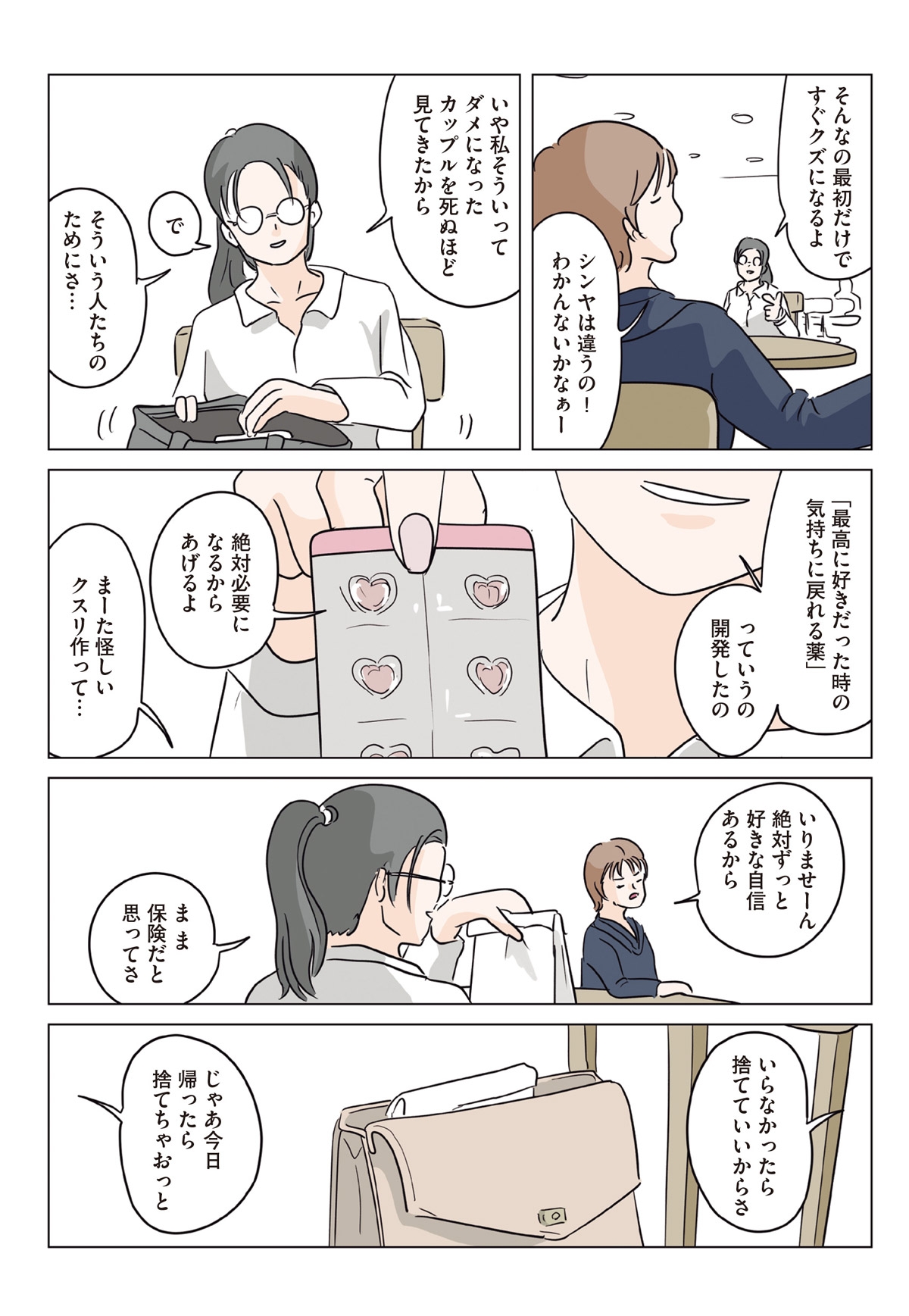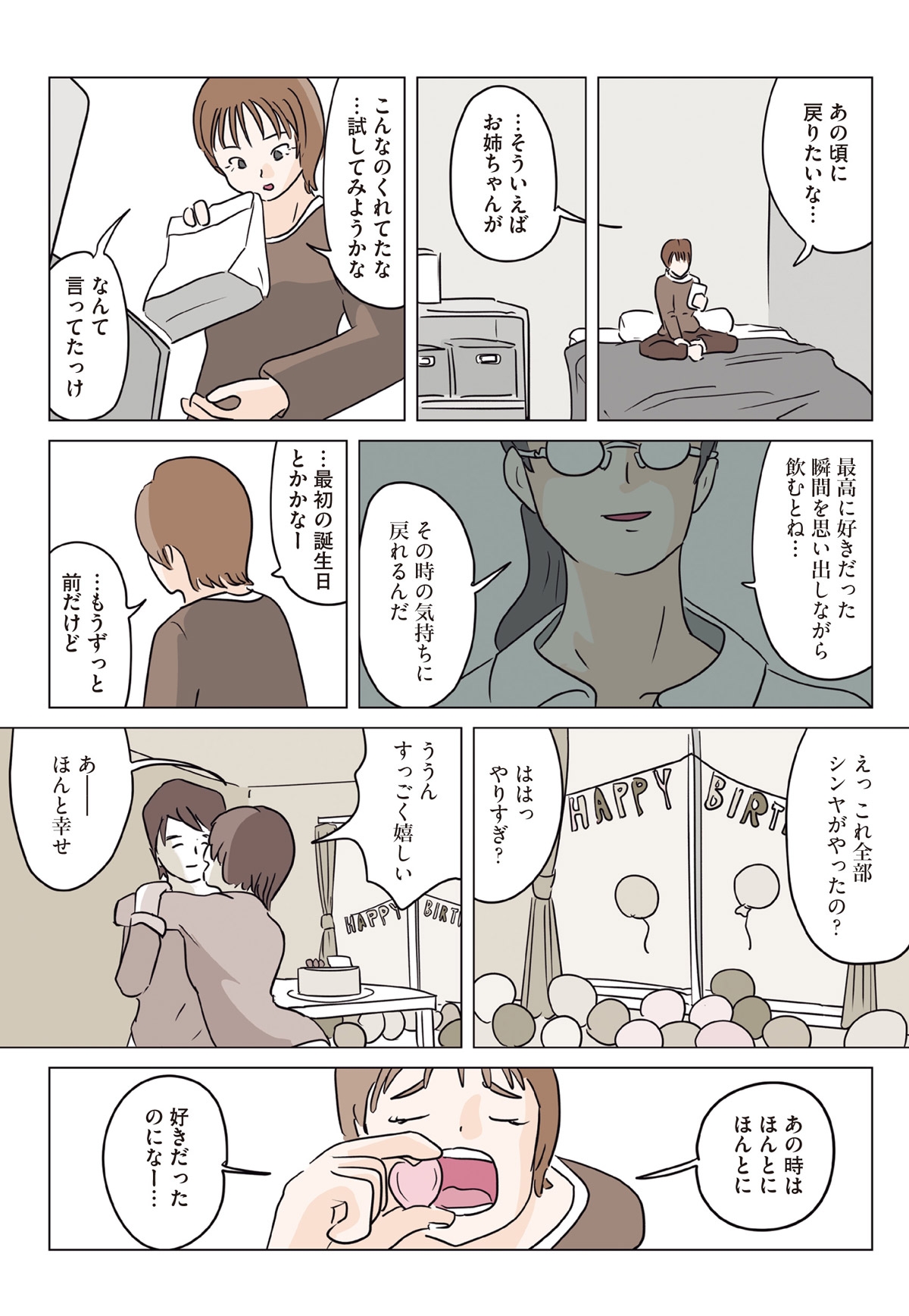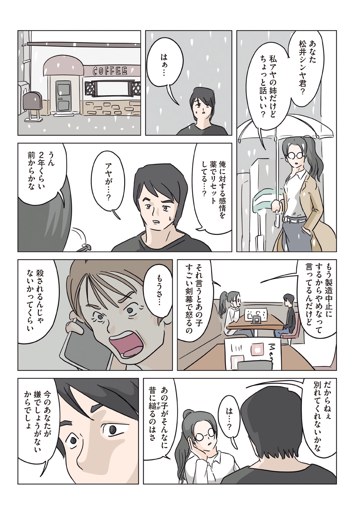 愛されていた時の記憶を蘇らせる薬を飲むアヤ、