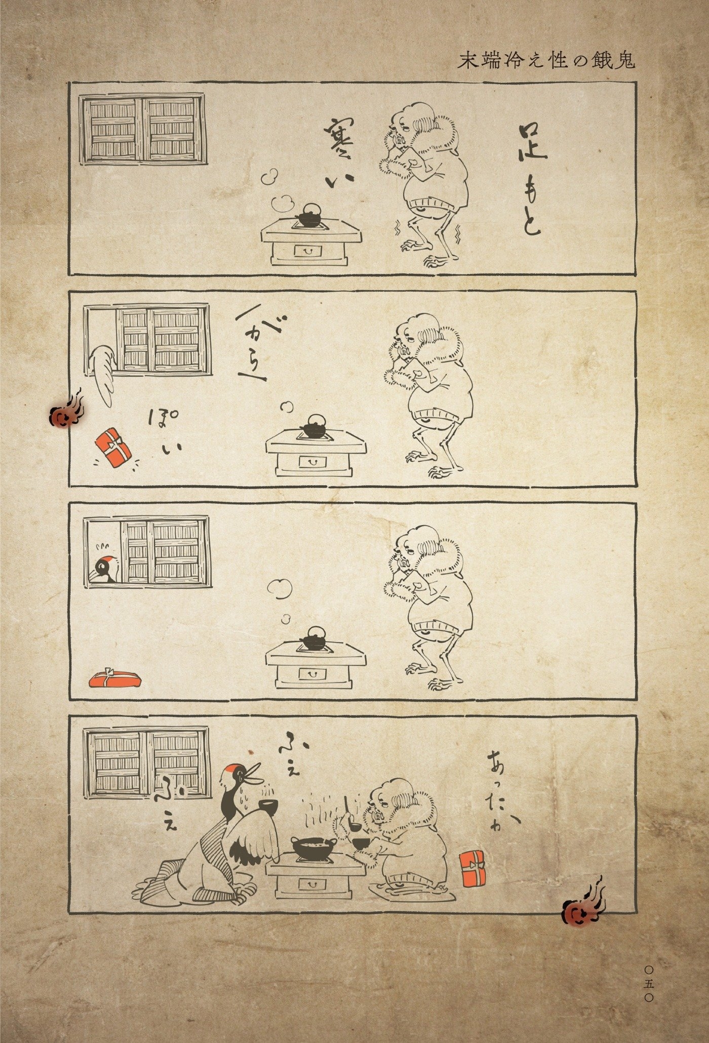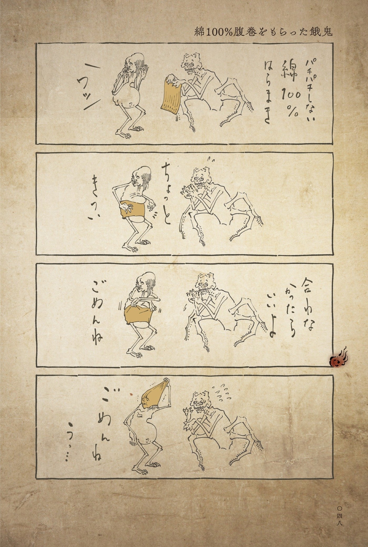 仏教が説く六つの世界「六道」の中でもとても過酷な「餓鬼道」。そこに生まれた者は、飢えと渇きに苦しみ欲に捉われているといいますが……この『丁寧な暮らしをする餓鬼』に描かれる餓鬼は、もしかして人間よりも心優しく品のよい暮らしをしているかも?