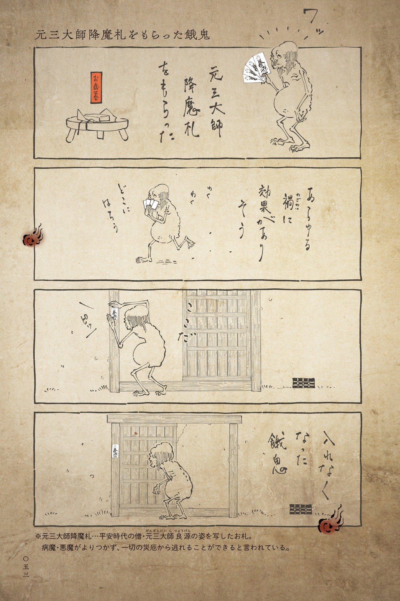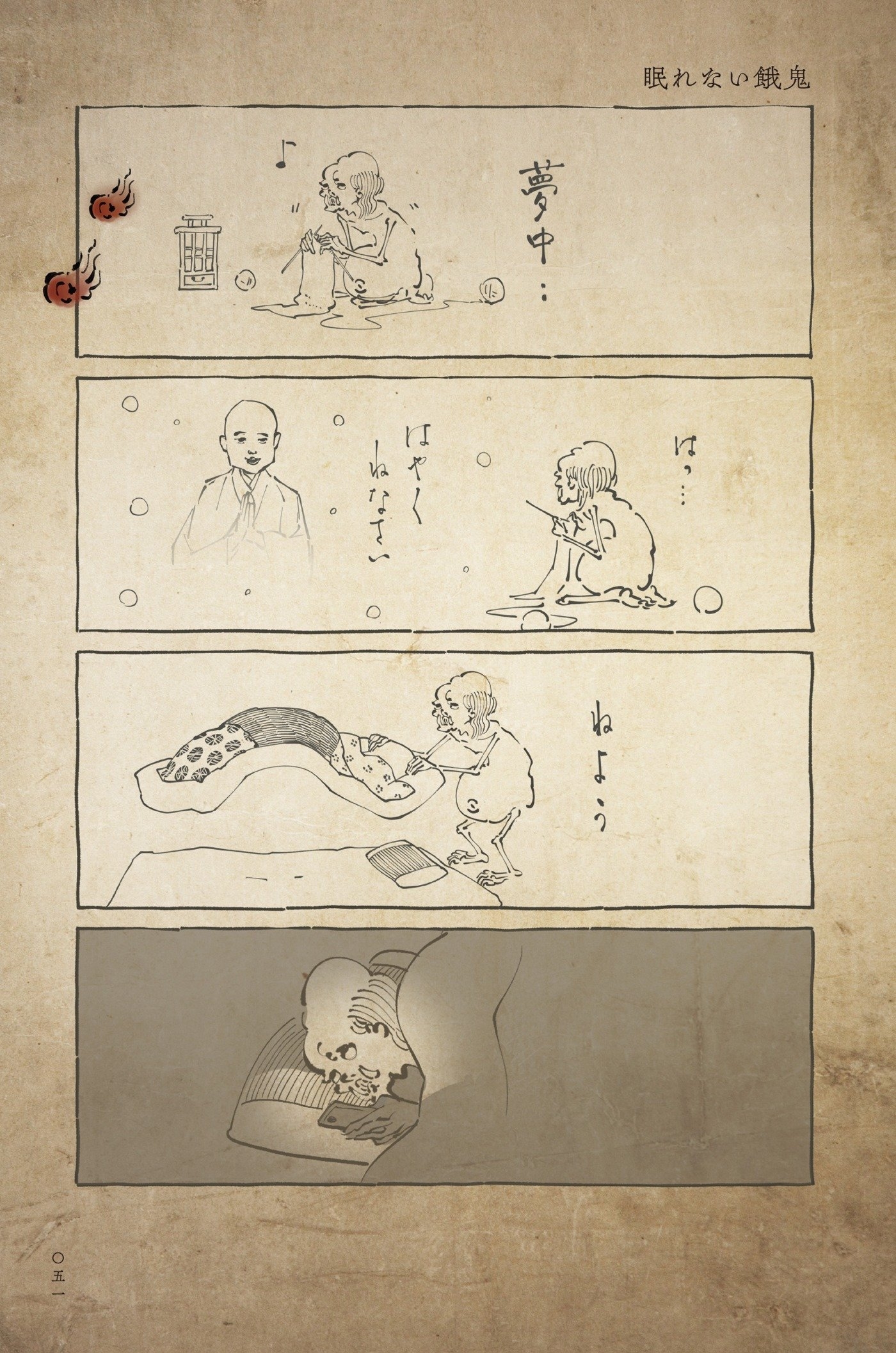 仏教が説く六つの世界「六道」の中でもとても過酷な「餓鬼道」。そこに生まれた者は、飢えと渇きに苦しみ欲に捉われているといいますが……この『丁寧な暮らしをする餓鬼』に描かれる餓鬼は、もしかして人間よりも心優しく品のよい暮らしをしているかも?