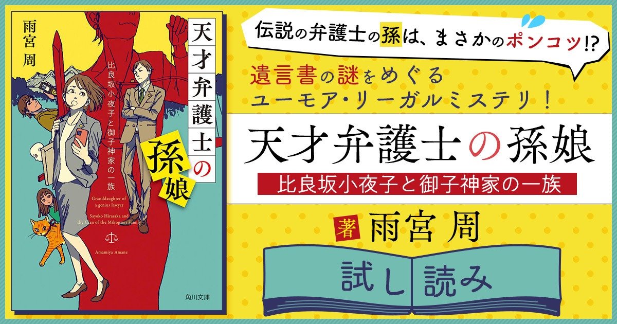 コミカルでスリリングなイチオシ新作『天才弁護士の孫娘 比良坂小夜子と御子神家の一族』、特別試し読みをお送りします!