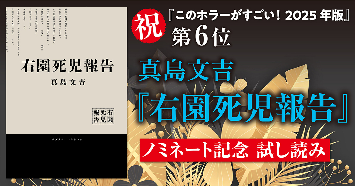 右園死児という名の人物あるいは動物、無機物が引き起こした現象の非公式調査報告書である本書が、『このホラーがすごい! 2025年版』(宝島社)で6位を獲得!